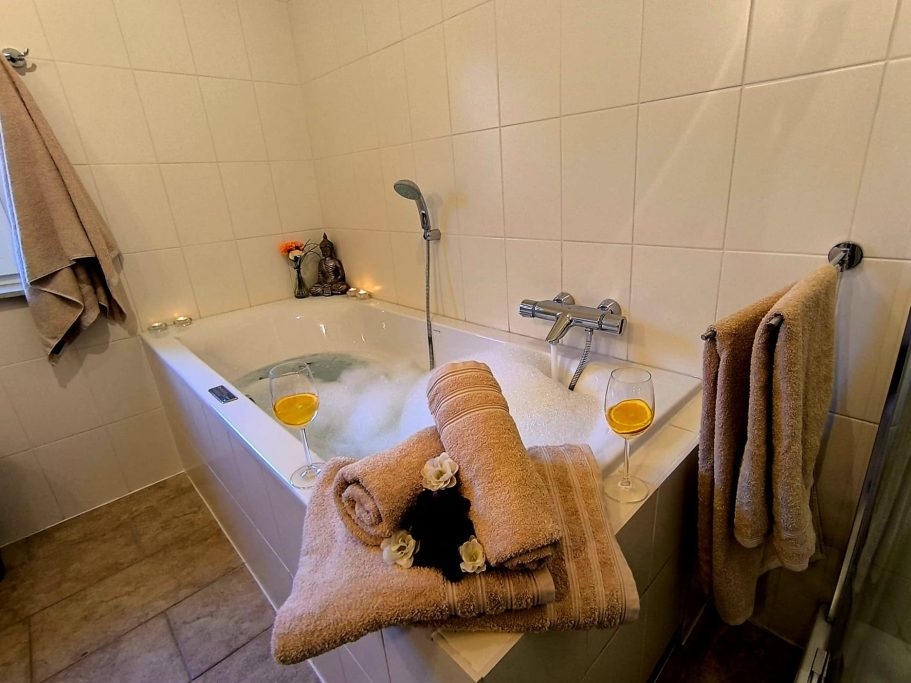 Es verfügt über drei gemütliche Schlafzimmer, ein stilvolles Badezimmer mit Whirlpool-Badewanne und separater Dusche sowie einen hellen Wohnbereich mit Kamin und großem Flachbild-TV.