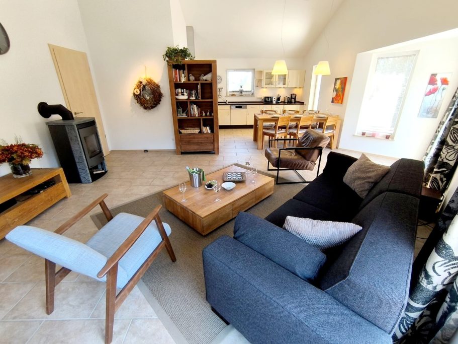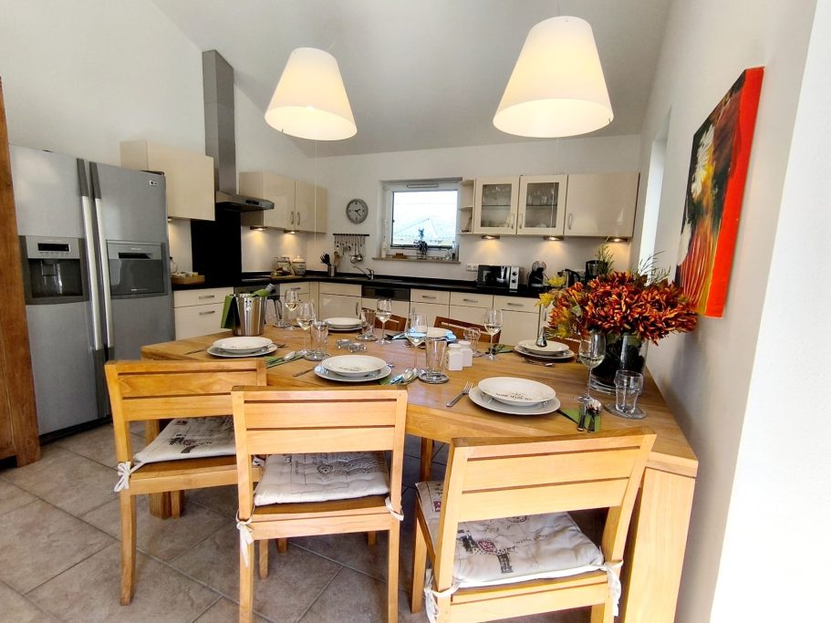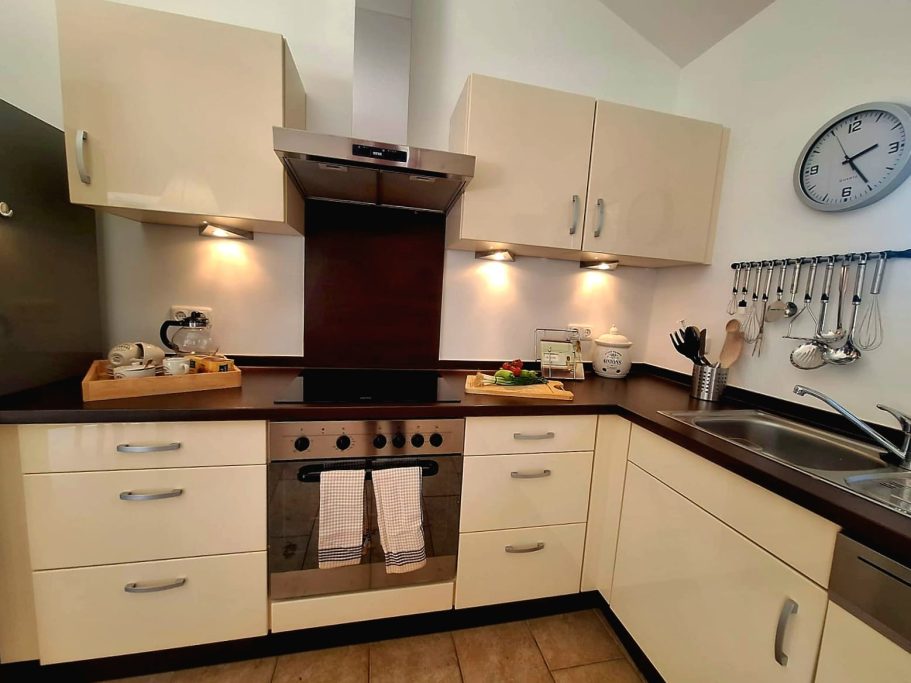 Die voll ausgestattete Küche mit Geschirrspüler, Backofen und Kaffeemaschine bietet besten Komfort für Selbstversorger.