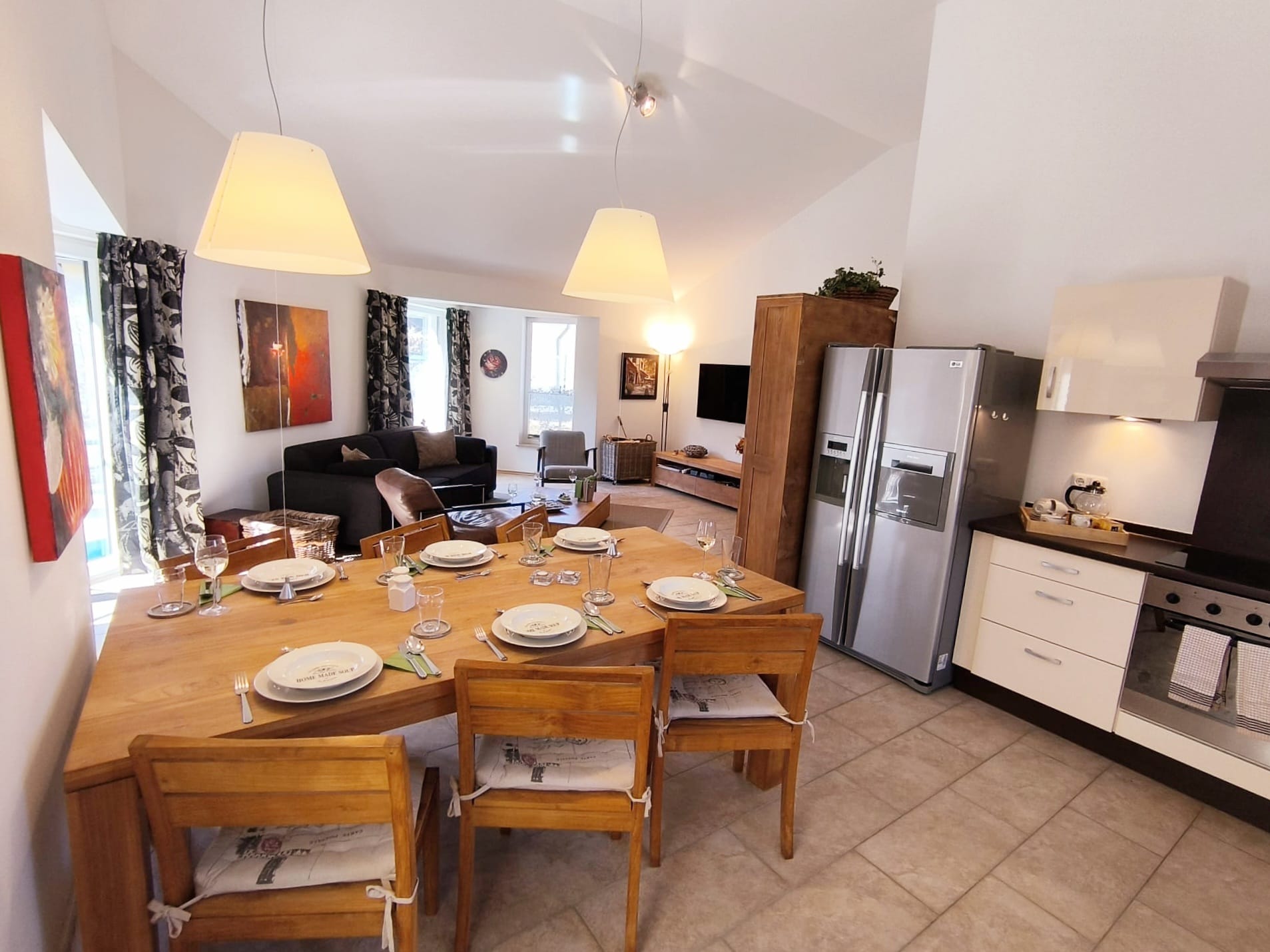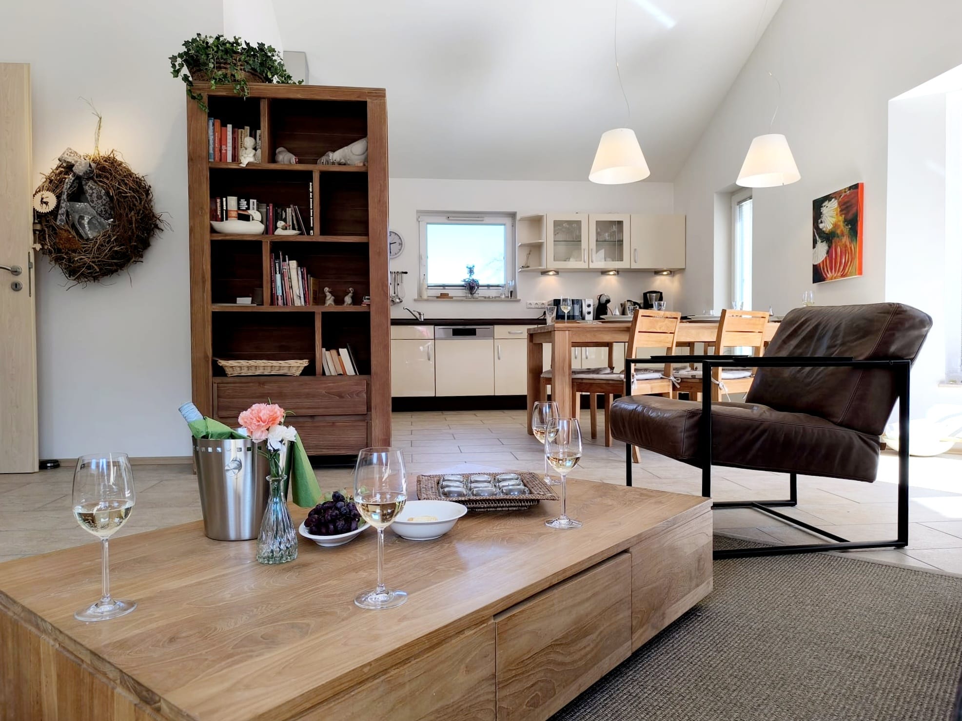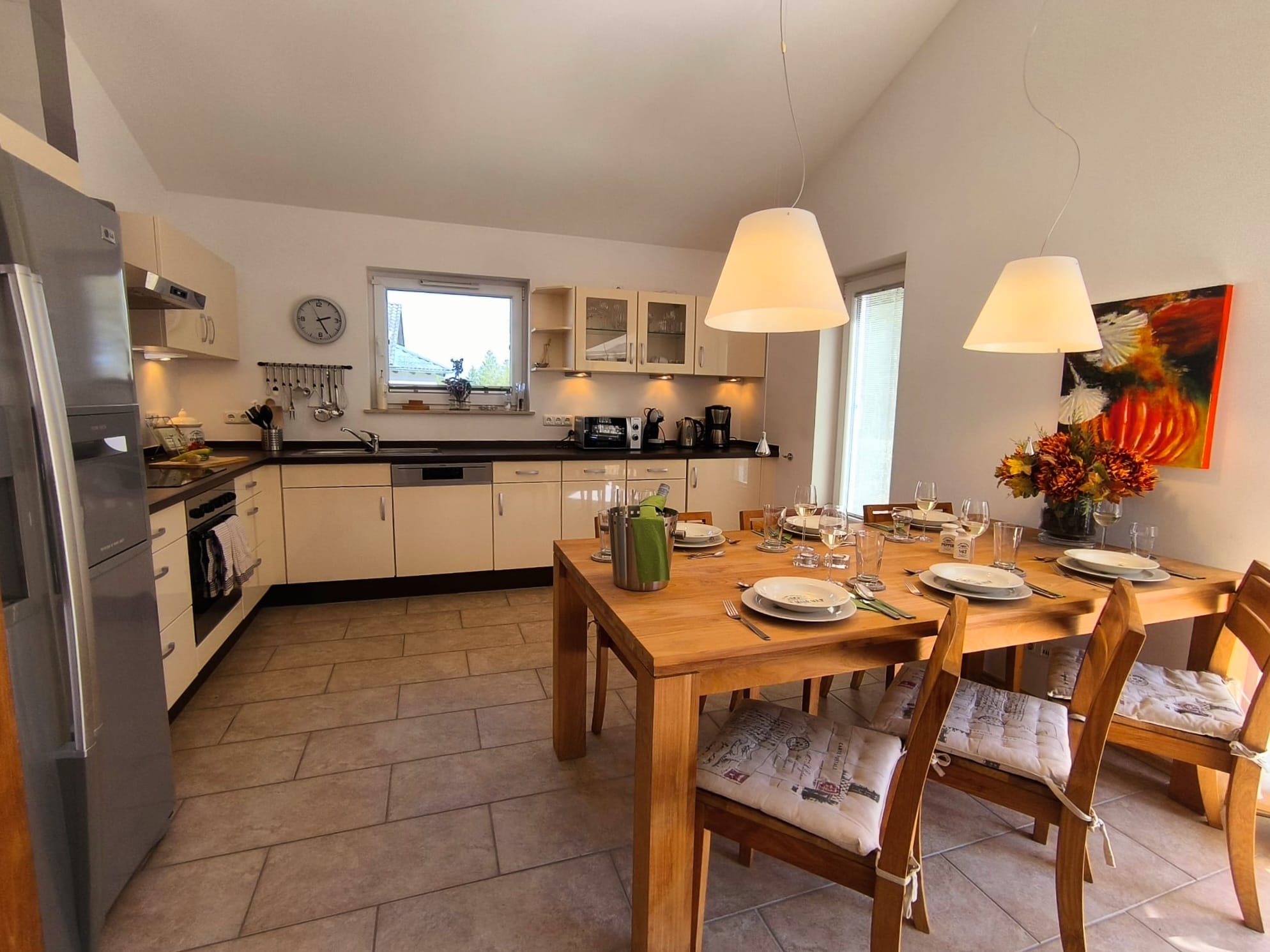 Die voll ausgestattete Küche mit Geschirrspüler, Backofen und Kaffeemaschine bietet besten Komfort für Selbstversorger.