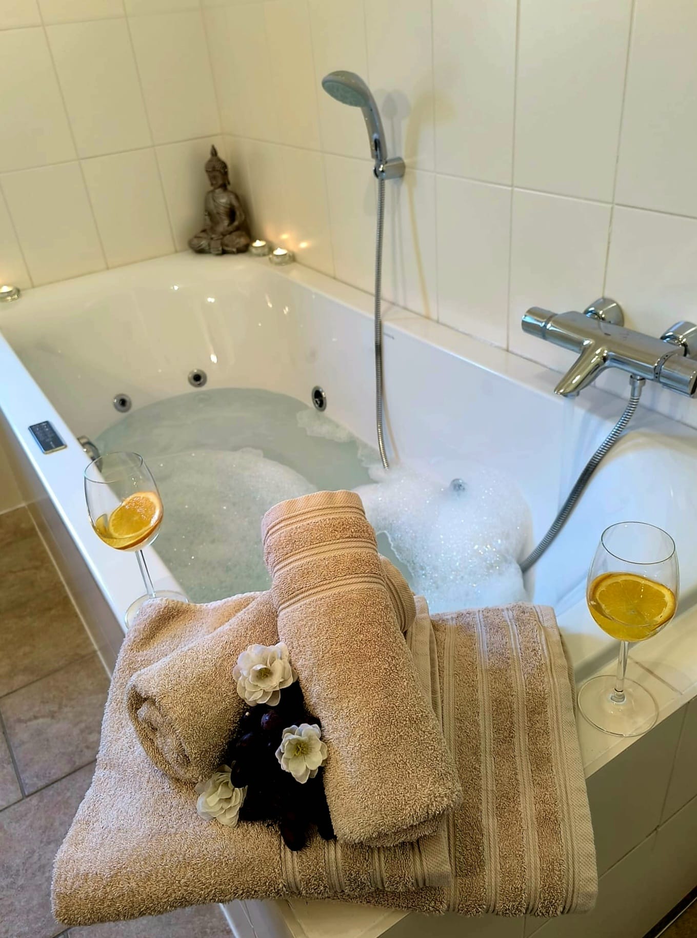 Es verfügt über drei gemütliche Schlafzimmer, ein stilvolles Badezimmer mit Whirlpool-Badewanne und separater Dusche sowie einen hellen Wohnbereich mit Kamin und großem Flachbild-TV.