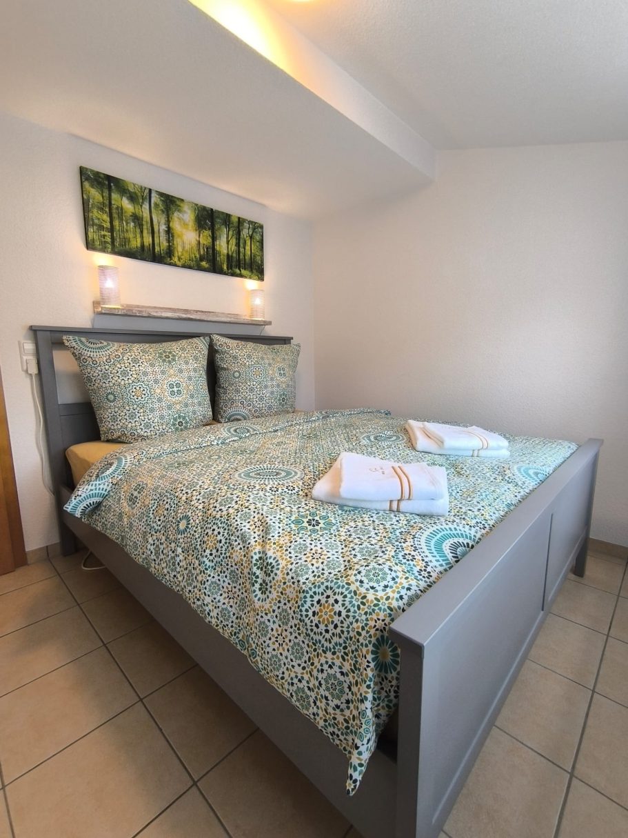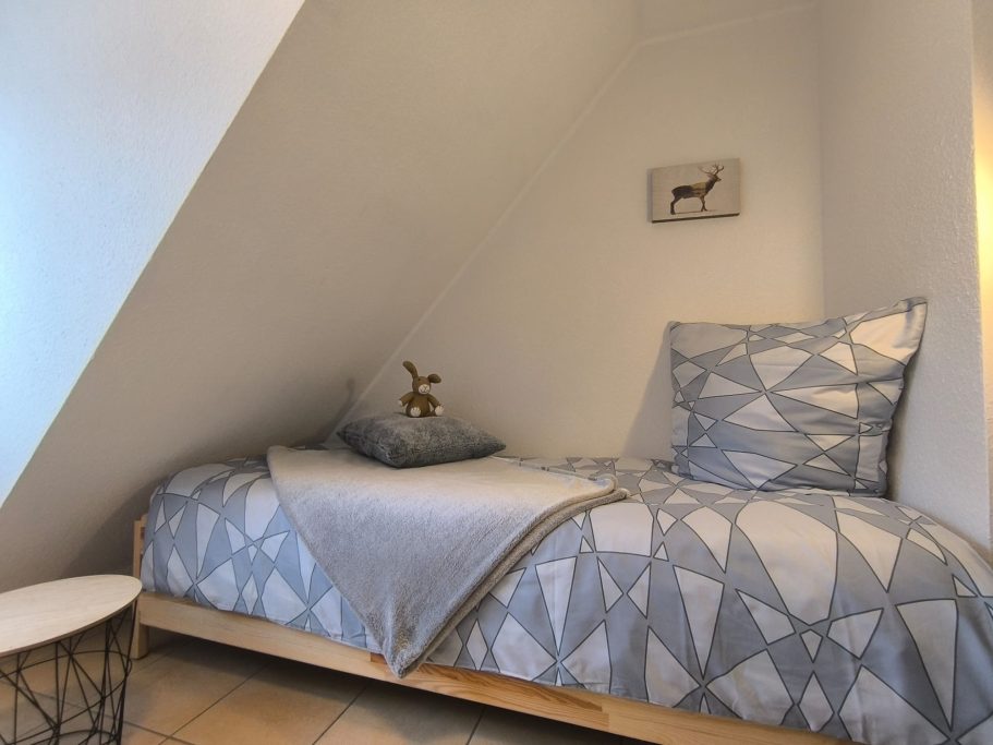 Auf ca. 60 m² Wohnfläche erwarten Sie drei komfortable Schlafzimmer – ein Zimmer mit Doppelbett und zwei mit je einem Einzelbett – sowie ein modernes Badezimmer mit Dusch-Badewanne.