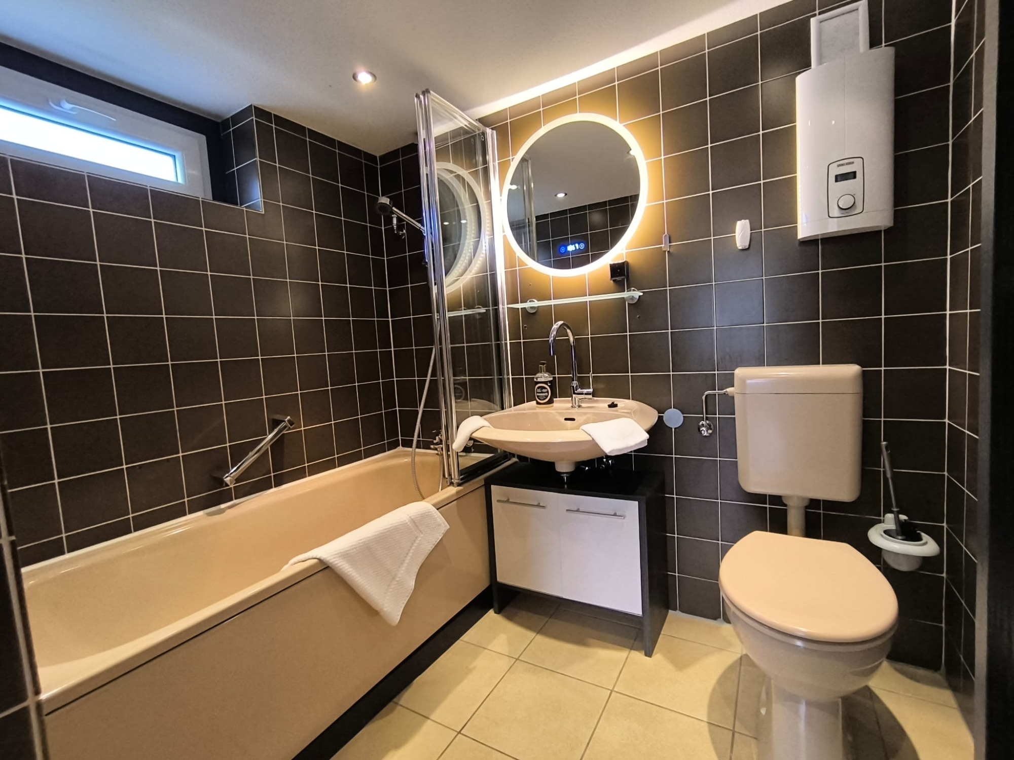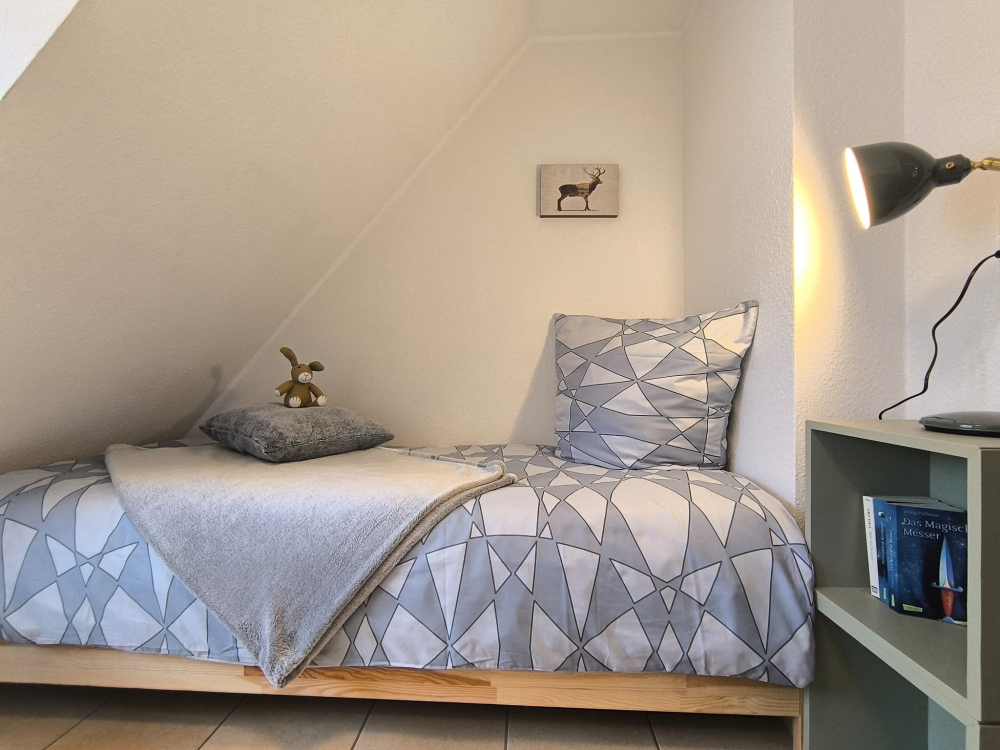 Auf ca. 60 m² Wohnfläche erwarten Sie drei komfortable Schlafzimmer – ein Zimmer mit Doppelbett und zwei mit je einem Einzelbett – sowie ein modernes Badezimmer mit Dusch-Badewanne.